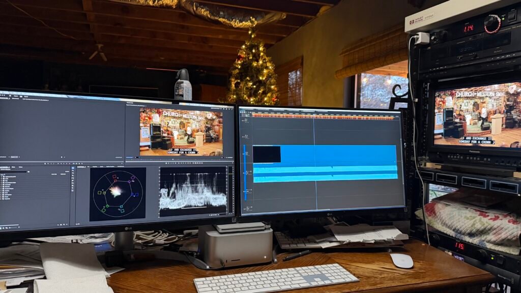 Complete audio mixing video editing with Pro Tools and Adobe Premier Pro. Video compositing with After Effects and Photoshop as well.