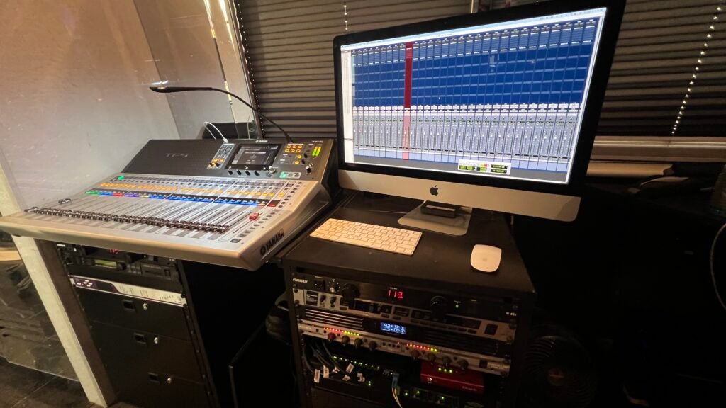 Equipped with a Yamaha TF-5 digital console and ProTools via Dante Audio network for 64 channels of multi track recording.
